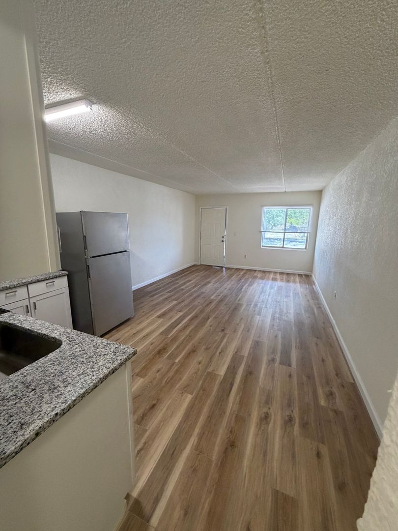 Welcome to Driftwood Apartments, where a fully renovated studio meets one of Sarasota's most convenient addresses. The Shoreline is a smartly designed 422-square-foot studio that lives comfortably thanks to a thoughtful layout, brand-new finishes, and natural light throughout. The kitchen has been completely updated with new appliances and cabinetry, and the bathroom features modern fixtures — move-in ready from day one.